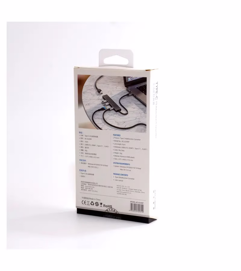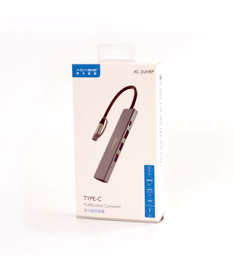 El adaptador multifuncional Acasis AC-2UHRP te permite expandir las capacidades de tu dispositivo con puerto USB-C. Combina cuatro funciones esenciales en un solo gadget compacto y portátil: salida de video HDMI 4K, puerto LAN Gigabit Ethernet, y tres puertos USB 3.0.