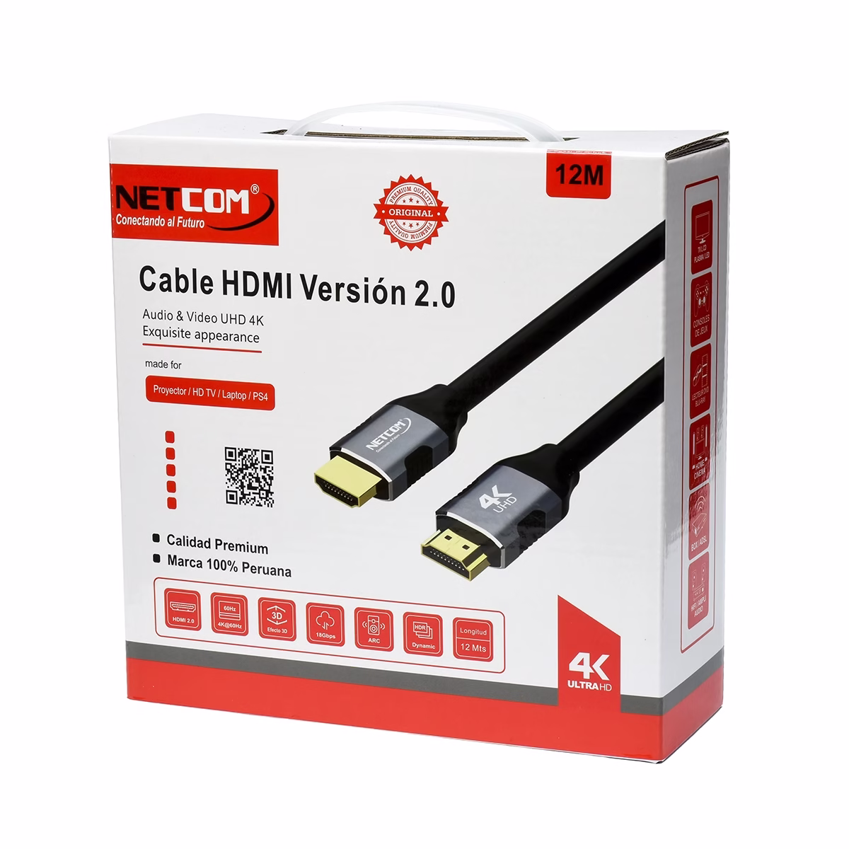 El Cable HDMI 12MT 4K versión 2.0 en la marca NETCOM PE-HD0860 de 12 metros es una solución de alto rendimiento diseñada para este desafío. A diferencia de los cables genéricos, este está fabricado con conductores 100% Cobre Puro de 28AWG y conectores de aluminio, asegurando una transmisión de señal estable y de alta fidelidad para que disfrutes de tu contenido 4K@60Hz sin compromisos.