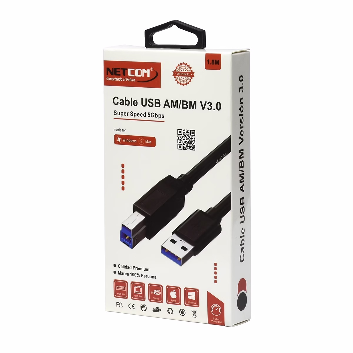 El Cable USB 3.0 Tipo B NETCOM PE-US0022 es un componente esencial para el usuario de alta gama. Es la única forma de garantizar la velocidad de 5Gbps de tus discos duros externos y docking stations. No dejes que un cable lento frene tu productividad.