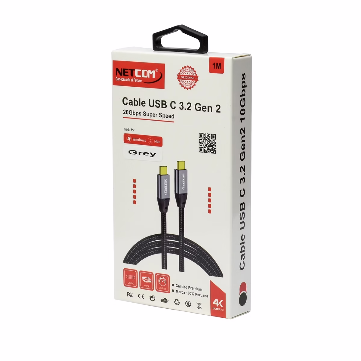 El Cable USB-C Gen 2×2 NETCOM PE-CA0301 es la solución definitiva para el usuario de alta gama. Es el único cable que necesitarás para manejar video 4K, carga de 240W y datos a 20Gbps en un solo cable de 1 metro, duradero y confiable.