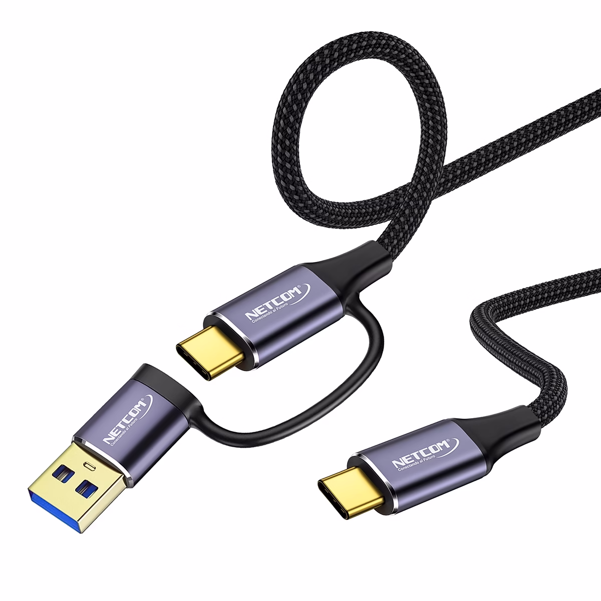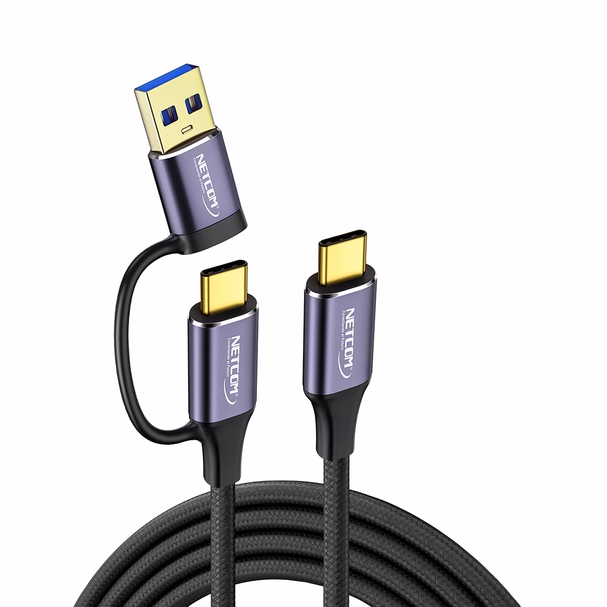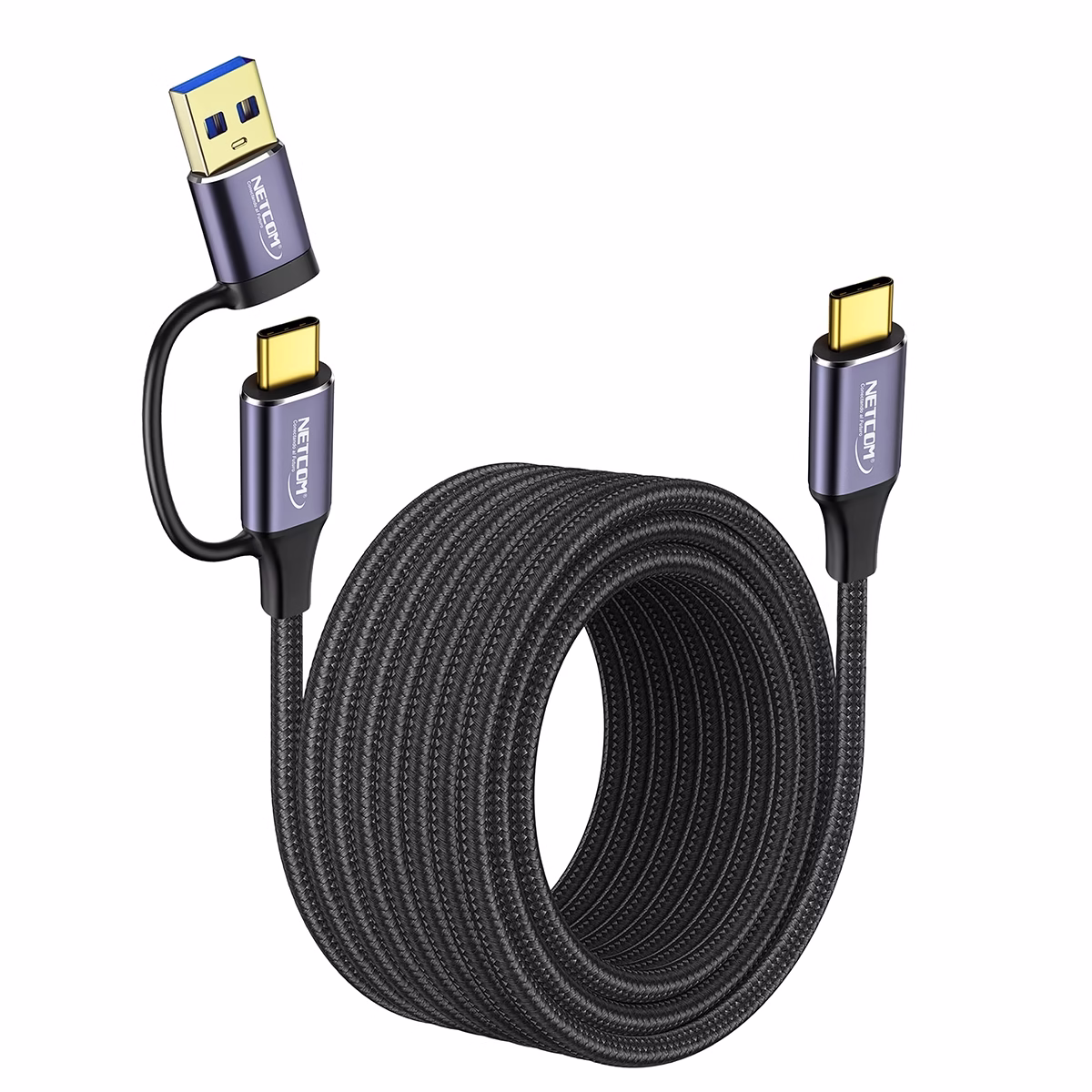 El Cable USB-C a USB-C de 5 Metros NETCOM es la solución definitiva para quien busca alcance, velocidad y versatilidad. Su construcción premium y el adaptador USB-A incluido lo convierten en el único cable de 5 metros que necesitarás para carga rápida y transferencia de datos en el Perú.