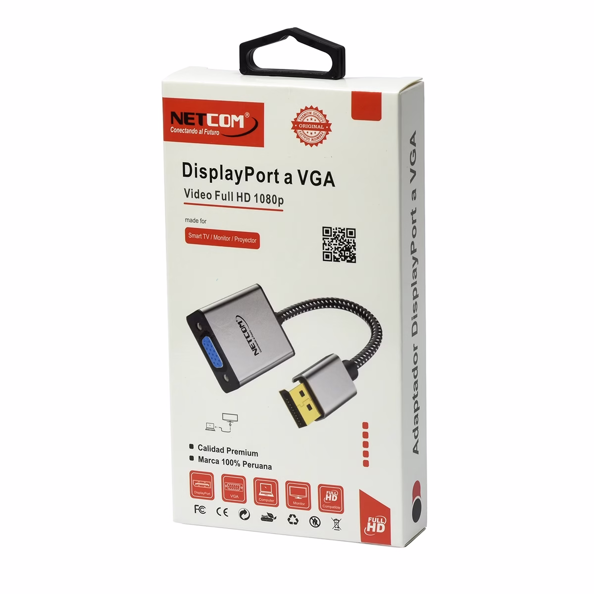 El Adaptador DisplayPort a VGA NETCOM PE-DP0174 es la solución profesional, robusta y de alto rendimiento que necesitas. Este adaptador activo convierte la señal de video digital a análoga con una calidad de imagen Full HD 1080p impecable, y su construcción premium con cable enmallado y cabezales de aluminio está diseñada para soportar el uso diario y constante, garantizando una conexión siempre estable.