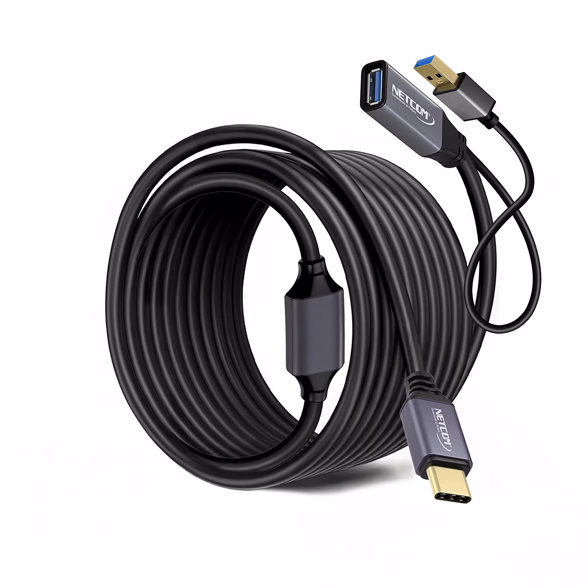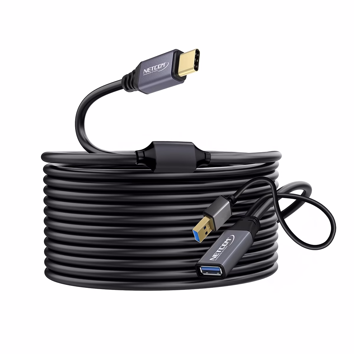 El Cable de Extensión USB-C a USB3 15MT (15 Metros) Activo en la marca NETCOM PE-EX0315 es la solución definitiva para conectar tus periféricos a distancias extremas. Gracias a sus amplificadores de señal (boosters) integrados, este cable de grado profesional mantiene la velocidad completa de 5 Gbps del estándar USB 3.1 de extremo a extremo, algo imposible para cables pasivos. Es la herramienta perfecta para grandes estudios, salas de conferencia, setups de realidad virtual y cualquier lugar donde necesites llevar tu conexión USB mucho más lejos.