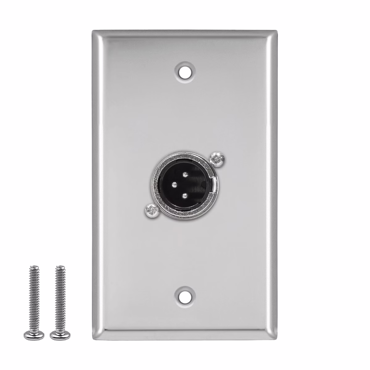 A diferencia de las placas de plástico que se decoloran o rompen con el uso constante, este modelo está construido íntegramente en Acero Inoxidable. Esto no solo le otorga una apariencia moderna y limpia, sino que garantiza una durabilidad excepcional frente al desgaste diario. El conector frontal XLR Macho de 3 Pines (conocido comúnmente como Canon) permite la conexión rápida y segura de cables de micrófono o líneas de señal balanceada.